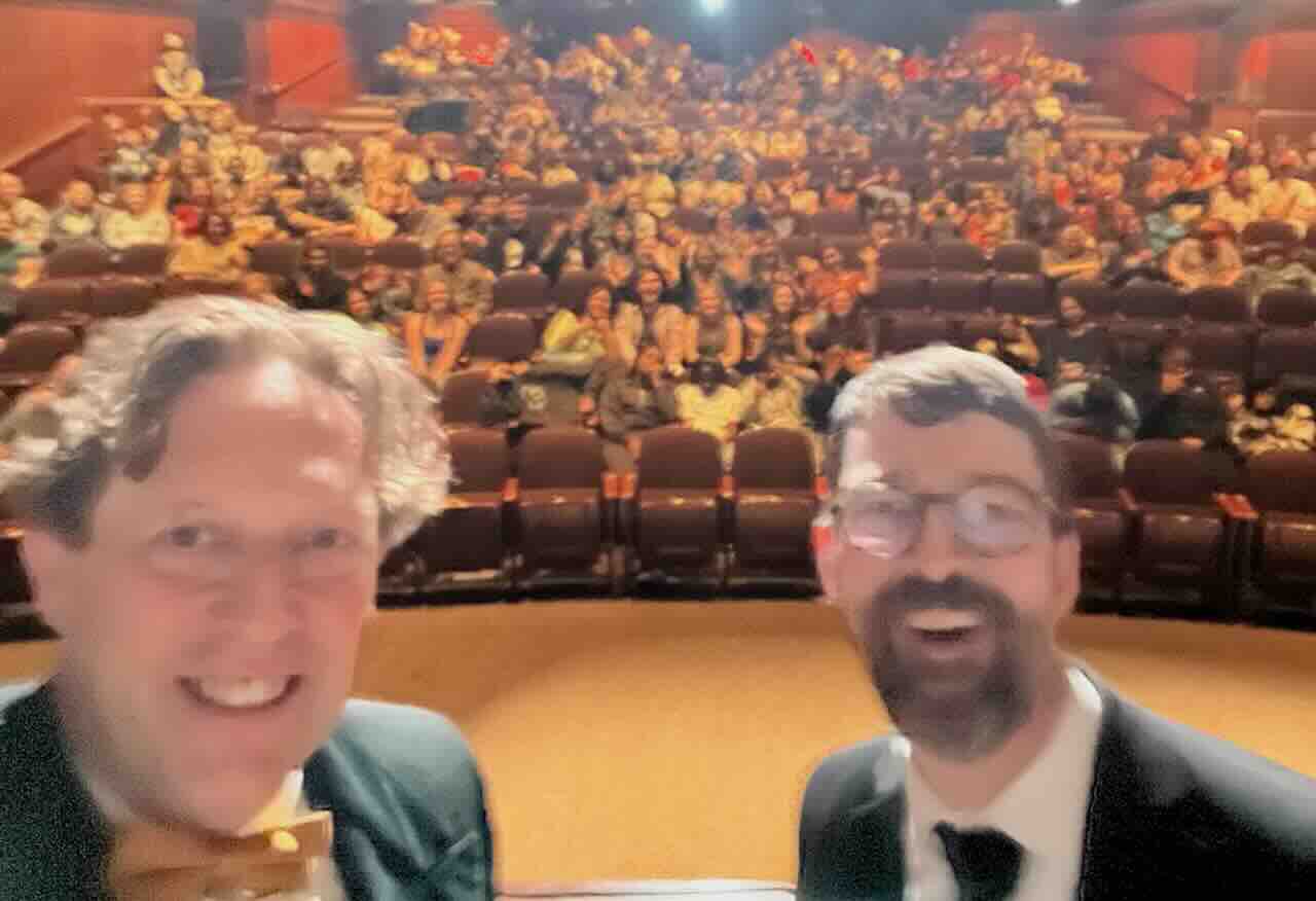 Many of the filmmakers attended the show, and after the show we had them all come up onstage to take a group picture: